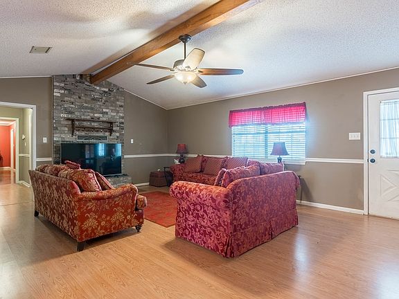 Experience the charm of country living in this spacious ranch-style home, perfectly situated just outside the city limits while remaining conveniently close to town. This inviting property boasts 4 bedrooms and 4 bathrooms, including two primary suites—each featuring large walk-in closets for ample storage. The open-concept kitchen and dining area is ideal for gatherings, and the cozy wood-burning fireplace adds warmth and character to the living space. Enjoy the outdoors with both a large covered front porch and a covered back porch, providing plenty of space for relaxing or entertaining. The gated entrance offers privacy and security, while mature pine trees create a serene, picturesque setting. The expansive yard is perfect for children, complete with a swing set, tire swing, and even a batting cage for endless fun. An added bonus is the private 1-bedroom, 1-bathroom guest home on the property, which can be used for entertaining, as a guest house, or as a rental property—the possibilities are endless. With abundant storage throughout and numerous features designed for comfort and convenience, this property offers the best of country living with easy access to town amenities.