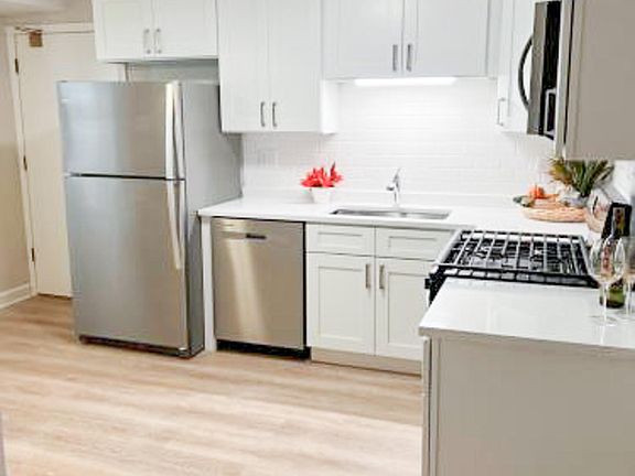 BRAND NEW EVERYTHING ready for move in. Great first floor apartment in Des Plaines close to everything! Brand new kitchen with cabinets and counter tops and brand new stainless steel appliances. New laminate floors throughout unit. Water, heat, cooking gas, garbage and PARKING included in the rent. TONS of storage in this unit with additional storage and laundry available in basement. $500 non-refundable move-in fee in lieu of security deposit. $45 credit check fee per applicant. Move in fee: $500 minimum or $300 per applicant