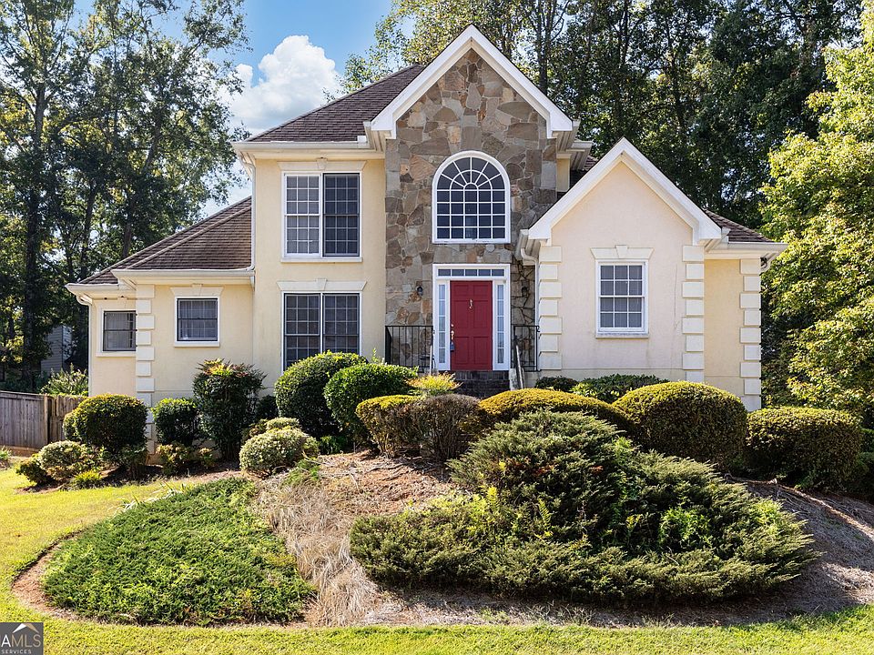 Sought after Hidden Hills community, 4 BR / 3.5 BA home offers open layout, finished basement, and plenty of outdoor living space for entertaining or relaxing. Step inside to find gleaming hardwood floors throughout the main level and a two-story foyer that fills the home with natural light. Open-concept living includes a dining room and living room with gas fireplace and two sets of French doors that lead to an oversized deck overlooking the landscaped, fenced backyard. Eat-in kitchen features white cabinets, granite countertops, stainless steel appliances, and vaulted breakfast room with abundance of natural light. Primary suite on main offers a bay window perfect for sitting area, private deck access, and ensuite bathroom featuring double vanity, tiled floors, shower, whirlpool tub, and walk-in closet. Oversized laundry room on main with upper cabinets and convenient half bath. Upstairs, you'll find three bedrooms and a full bathroom, offering privacy and flexibility. Finished basement expands your living space with custom bar, tiled floors, full bathroom, and multiple rooms perfect for media room, playroom, additional bedroom, or home office. Two-car garage provides extra storage space. This property provides an inviting space for gatherings, play, or peaceful evenings. Conveniently located - just one mile from Biffle Park and convenient to local shopping, I-20, and I-285.