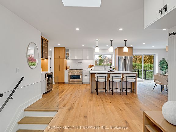 Large open concept layoutPot fillerCounter-depth fridgeRetractable microwaveBeverage centreFully reconstructed lower levelTemperature-controlled wine room
