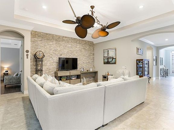Immaculate home on an oversized lot of .35 acres and 3,148 square feet of under air living space with a total of 4,261 square feet is a rare find. Move-in ready with numerous upgrades: impact windows/doors, 12' tray ceilings, crown molding, plantation shutters, upscale lighting, and fans. No carpet here: beautiful neutral tile and 100% waterproof "hardwood" flooring throughout. This energy-efficient home has a Kohler whole house generator, whole house water filtration system, solar panels, gas for the outdoor kitchen, and pool and gas for the indoor gourmet kitchen with stainless appliances, newest trend countertops, and storage galore. Bonus family/media room with 4th bedroom option. See attached floor plan and a list of upgrades. Enjoy nature with a picture screen cage enclosing the saltwater pool and spa. 4 bedrooms + den, 4 full baths, 1 half bath, 1 pool bath, lush landscaping, lighting and Smart Home features make this home perfect for the modern family. Excellent school districts and convenient location in this newer gated community with low HOA fees.