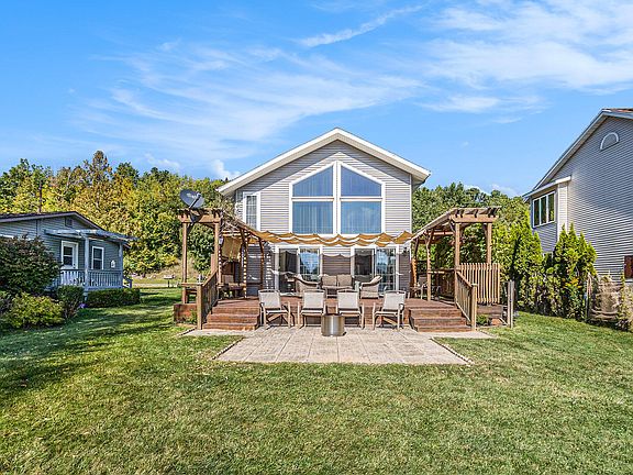 Crystal / Hackert Lake living at its best! This beautiful 2-bedroom, 2-bath waterfront home offers 42 feet of sandy frontage on this desirable all-sports lake with walk-out beach access perfect for swimming, boating, and lakeside fun. Enjoy fishing right from your private dock or take the boat out for a day on the water. Inside enjoy the open floor plan with cathedral ceilings and a loft area which can double as a bonus sleeping area. Step out onto the large deck or relax on the patio and take in the stunning lake views. A detached 2-car garage with attic storage adds even more value to this fantastic lakefront retreat. Tucked away on a quiet dead-end road, this home offers the peace and serenity of true ''Up North'' living. Embrace the small-town charm while still enjoying the convenience of nearby amenities, with both Scottville and Ludington just minutes away. Whether a year-round home or a weekend escape, you'll love the sense of community, and natural beauty that surrounds you.