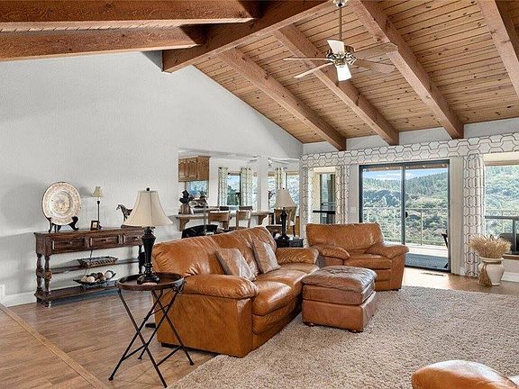 VIEWS, VIEWS, VIEWS!! Welcome to the STUNNING 14790 Eagle Ridge Drive! Looking to get out of town and for some peacefulness? Look no further! Just 10 minutes up the hill located in a gated community you will find this 3 bedroom plus huge office and 3 bath home boasting 2531 sqft! Walking in you will be drawn to the beautiful newer flooring, a big open living room, gorgeous knotty pine vaulted ceiling and corner brick hearth with wood burning stove. The kitchen offers granite countertops, a new dishwasher and microwave, plenty of counter space and more views from every window! Down one hall you will find a HUGE laundry room, a full bathroom and an office offering built-ins. The other side of the house has a separate hallway leading to the other two bedrooms, a bathroom and the primary suite. The large primary suite offers a big walk-in closet and an en-suite which stars dual sinks, a jetted bathtub and a separate walk in shower with new tile! The backyard is the star of the show! Panoramic views! The newer Trex deck and railing gives the perfect area to sit and relax with uninterrupted views after a hard days work while taking in the beauty and peace around you! Other upgrades include: newer HVAC system, ceiling fans throughout, instant hot water, newer toilets, breakfast nook with eating bar and wainscoting, custom shutters/blinds, soft water/filtration system, tons of built in cabinets, crown molding throughout, variety of fruit trees, whole house fan and much more! Do not miss this one as it is truly one of a kind!