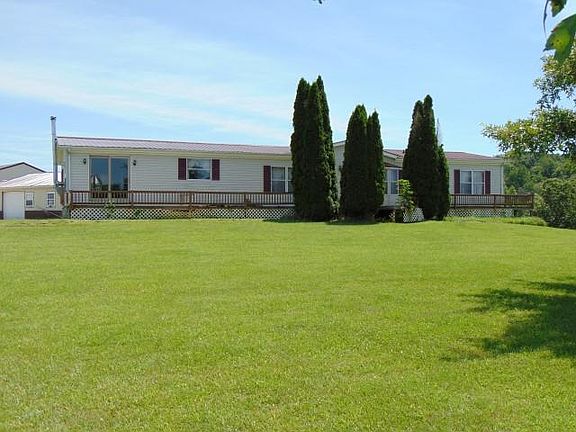 Nice manufactured home with stone fireplace & woodburner. Basement entrance on outside. Range & refrigerator stay. Commercial state approved 40' x 80' building currently used as auction house, has kitchen with 3-bay sink, bath, overhead door, E/F/A furnace, woodstove, refrigerator, insulated, 220 electric & office. 16' x 40' garage add-on in back. Includes 2-car garage (24' x 40'), 1-car garage & 1-car tractor garage. Building has its own septic system. Commercial building built in 2010. Beautiful land with garden area & woods. Close to Wayne National Forest in rear.