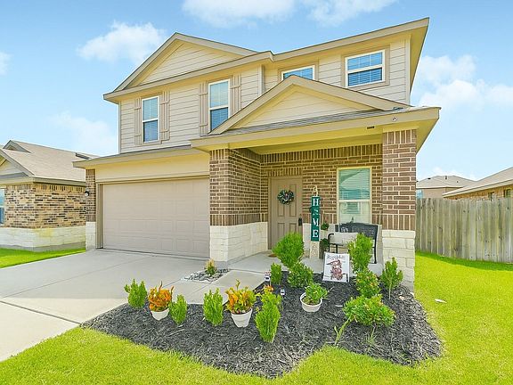 Welcome to 14793 Hazel Branch Dr, a stunning D.R. Horton-built home in 2022, located in the desirable Harrington Trails. This two-story home features an open-concept floorplan, perfect for entertaining! The chef’s kitchen offers stainless steel appliances, a spacious island with breakfast bar, and a walk-in pantry. The flow between the kitchen, living, and dining areas creates an ideal space for gatherings. With 5 bedrooms and 3 full baths, this home offers plenty of room for the whole family. The large primary bedroom features a cozy sitting area and an en-suite bath with a dual-sink vanity and a generous walk-in closet. A large utility room adds convenience. Enjoy outdoor living with a covered front porch and rear patio. Harrington Trails offers fantastic amenities, including a pool, splash pad, playground, walking trails, and an on-site elementary school. Conveniently located just minutes from Highway 59, this home is perfectly positioned for both comfort and convenience!