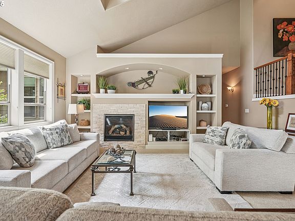 Welcome to this beautifully maintained home tucked away on a quiet dead-end street with a surprisingly peaceful backyard retreat! The large, covered patio is ideal for year-round entertaining, complete with a gas hook-up for your BBQ and a privacy wall that helps buffer any road noise from behind—don’t be surprised by how quiet it feels.Inside, the open-concept layout connects the kitchen and living room, featuring vaulted ceilings, built-in shelving, and a cozy gas fireplace. The kitchen includes stainless steel appliances, granite countertops, a pantry, and a casual dining nook, plus a formal dining room for hosting. A dedicated home office on the main level adds flexibility and could easily serve as a 4th bedroom.The spacious main-floor primary suite is a true retreat, with vaulted ceilings, large windows that bathe the room in natural light, a generous walk-in closet, and a luxurious soaking tub for ultimate relaxation.Upstairs, you’ll find a spacious bonus room, two additional bedrooms, and a full bath. One of the upstairs bedrooms features a huge walk-in closet and could serve as a second primary suite.Additional highlights include hardwood floors, central vacuum, central A/C, EV charger, and a large 2-car garage. This home checks all the boxes—move-in ready and in a fantastic location!