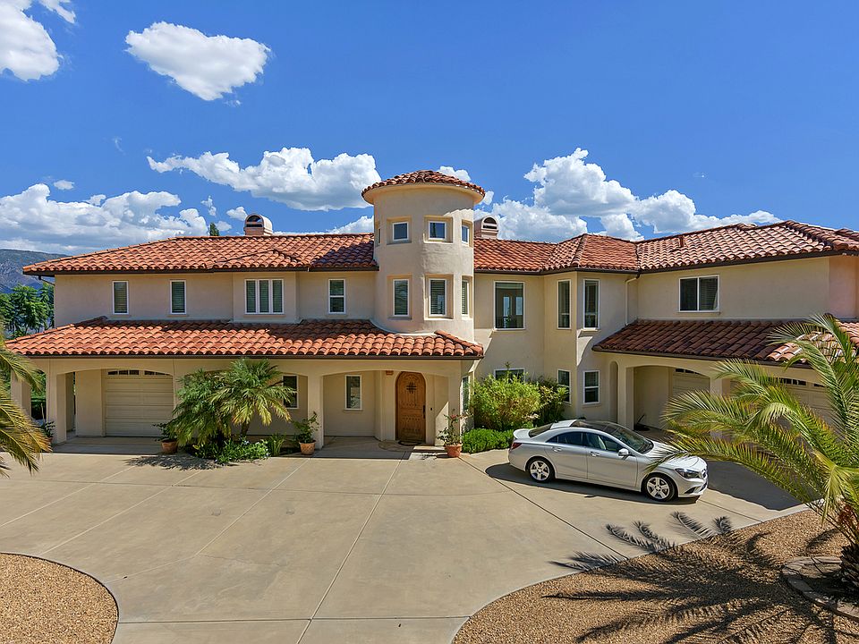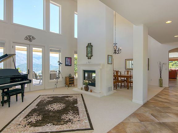 Gorgeous Home. Panoramic views are captured from practically every window downstairs and upstairs in this custom built Mediterranean home. As you drive down this picturesque street with beautiful homes tucked in the landscape, and magnificent mountains as your backdrop you cant help but want to call this neighborhood your home. The extra drive to your peace of heaven is your time to unwind so when your automatic gate opens and you drive down your cypress lined driveway you are able to fully enjoy the privacy, peace, and luxury that awaits you at this custom home. From the moment you open the front door you will have that awe feeling as you take in the expansive formal living and dining room with its two story ceiling, picture windows lining the wall to the captivating view and a center two way fireplace that goes all the way to the ceiling. Where is everyone you say? Well, in this 4100 sq. /ft., 4 bedroom 3.5 bath, with office & playroom, sitting on tastefully landscaped 2.09 acres with a pool & spa, they could be anywhere. A shout may come from the chefs kitchen as dinner is being prepared or the great room with its informal eating area. Upstairs is the loft big enough for a pool table, two bedrooms with a jack n Jill bathroom with separate vanity rooms, and a conveniently located laundry room. The Master Bedroom with en-suite is privately situated at one end of the wing with turret entrance & sitting area, raised two way fireplace for the enjoyment in both bedroom & bathroom, 2 closets with built-in, spa tub, oversized shower and double doors opening to your private deck. Pool parties can be enjoyed from the cabana and bar with built in barbecue or the al fresco patio off the kitchen. All areas of entertainment have the back drop of the panoramic views. Solar panels are owned so electricity costs are nominal. Your gas is propane and your sewer is septic. A few more notables to remember. There are 3 fire places and two of them are two way, current owner has put in an enormous about of money to hardscape, landscape, entrance gate, redoing pool coping & installation of high end solar system since purchasing the home.