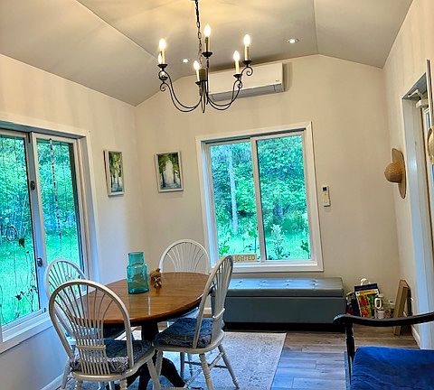 Bright and beautiful tiny home located on beautiful wooded 3+ acre lot with mature gardens, apple trees, and abundant wildlife. New detached garage with plenty of space for Northwoods adventure equipment. Located just a few minutes from downtown Cable, WI. Renter is responsible for gas/electric, lawn maintenance (mower provided) and snow removal.