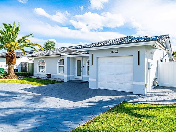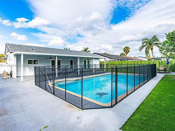 Fully renovated 3-bedroom, 2-bath home featuring a sleek modern kitchen, spacious open-concept living areas, and a private backyard with pool. The cabana bath provides easy access from the pool area, while hurricane shutters offer peace of mind. The garage is not a full car garage. It serves as a utility room.