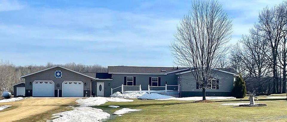 Wonderful home on 20 acres. Walk into a large open floor plan with natural light galore. Well laid out kitchen with oversized island, automatic skylight, corner sink window, and stainless-steel Maytag appliances. The primary bedroom includes a walk-in closet, a full jetted bathtub, and a skylight. Head outside to the country oasis. 20 acres of beautiful wooded and some tillable land. Yard is complete with shed and sperate 12 X16 she shed. Sit outside in the peaceful yard and watch the sun go down. This is one you will not want to miss.
