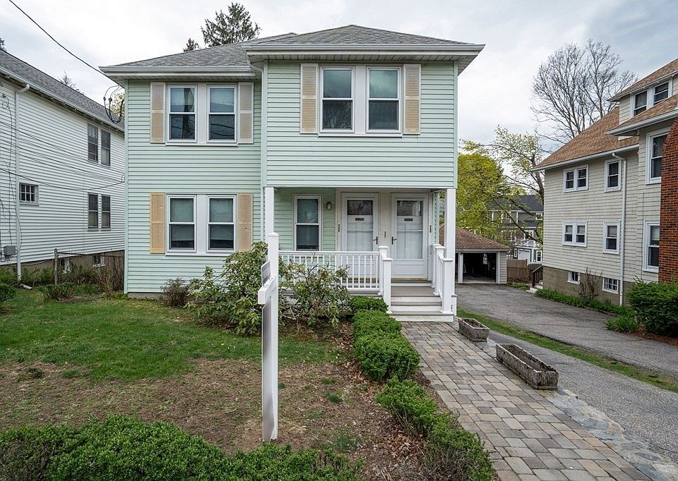 Tremendous opportunity to get into the Belmont multifamily market! This solid 2 family home is located right on the 73 bus line and right outside of redeveloped Cushing Square. First floor unit was renovated in 2010 and has 4 rooms and 1 Bedroom. Beautiful, refinished hardwoods throughout the unit starting from the front entry way leading to the separate living and dining room. Eat in kitchen with plenty of oak cabinets, formica countertops and separate pantry and rear enclosed porch. Second floor unit is 5 & 2 with hardwood floors and ready for your updating. Replacement Harvey windows throughout both units, updated gas Burnham heating systems and two car direct.entry (under) garage. Unfinished walk up attic and basement. Very usable fenced enclosed back yard. Easy access into Harvard square and Boston.
