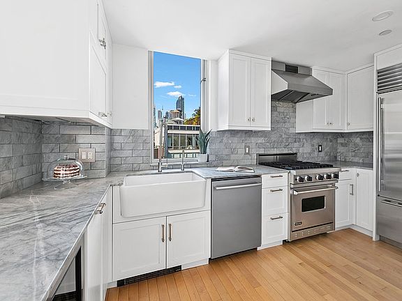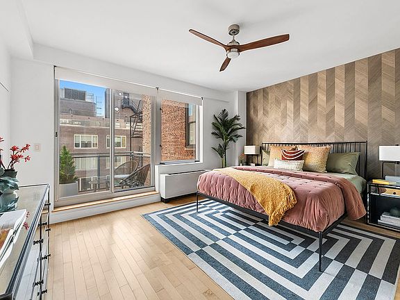 The primary suite includes a south-facing balcony and a spa-like bathroom with a steam shower and a deep six-foot soaking tub. The second bedroom also enjoys southern exposure and its own private balcony. A large private roof deck crowns the home with panoramic views of the Chelsea skyline, creating a peaceful retreat above the city. Enjoy the convenience of electric and water hookups already installed on the terrace.