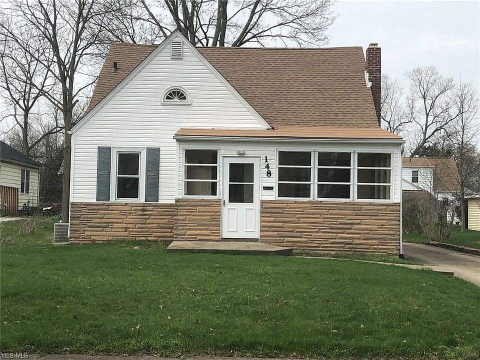 Nice 3 Bedroom Cape Cod-style home in convenient Barberton location with 3 bedrooms and 1.5 baths. Massive second floor bedroom with nursery/walk-in closet and additional walk-in closet. You'll enjoy the large covered front porch/sun room with loads of windows and new indoor/outdoor carpet. Large eat-in kitchen with plenty of space, counters, cabinets and planning desk and also includes new sink and faucet. Don't miss the finished basement with rec room, laundry area and half bath with shower. Spacious detached 2-car garage and extra parking; new flooring on entire first floor carpeting and laminate. Situated on a quiet street less than a block from Edgewood Park. Other features include: New roof, New toilet in basement, newer high efficient furnace with central air (recently serviced), new thermostat, glass block windows, mud room entrance in rear with new carpet, some new plumbing and updated electric. Fridge, stove, washer and dryer all stay.