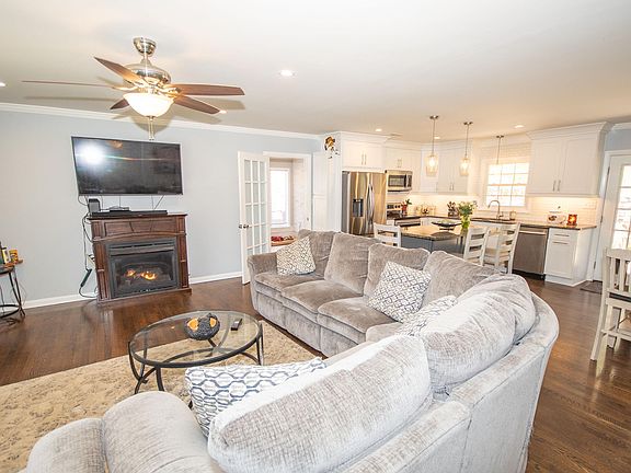 This charming home is situated in the highly sought-after Rainbow Forest Subdivision and boasts an inviting open-concept floor plan. The beautifully updated kitchen features stunning granite countertops, stainless steel appliances, and gorgeous hardwood flooring that extends throughout the main living areas. A delightful Four Season sunroom, conveniently located adjacent to the kitchen, offers its own separate entry. This single-story home boasts three bedrooms and two newly remodeled baths, with laundry facilities on the main level for ease and convenience. The basement offers a newly finished family room with a gas log fireplace and ample unfinished space for storage. The patio area is perfect for outdoor entertaining, with a stunning rock wall and plenty of space for al fresco dining. The home sits on two lots, with two driveways and a spacious two-car garage.