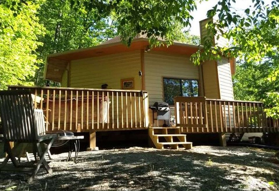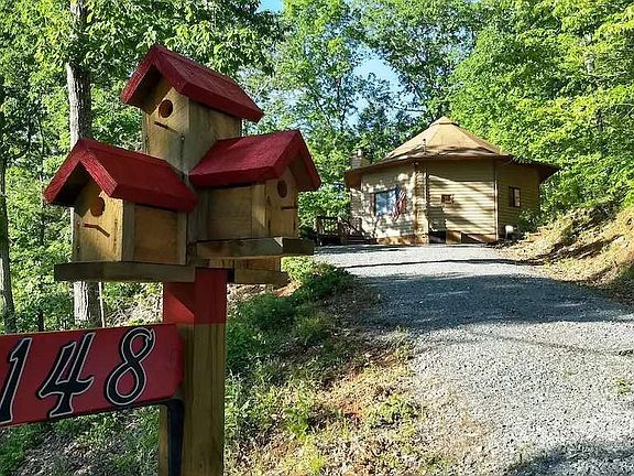 Retreat to Rainbow Mountain ! Gated, well kept HOA community located only 15 minutes to downtown Ellijay and 1.5 hours to Atlanta. Enjoy the views from the spacious hot tub, star gaze and truly relax in this conveniently located gem. 956 sq feet of single level living with a spacious loft area. New hot water heater, HVAC recently installed, newer gutters, move in ready with some furniture/d+cor negotiable for purchase. Please note: As of 2023 the HOA is moving to no longer allow short term rentals (30 days or less). Enjoy true serenity in the mountains in this peaceful neighborhood. Viewing by appointment only. The community is gated and cabin is occupied. Please do not disturb occupants. Schedule a viewing today, you know this one won't last long !