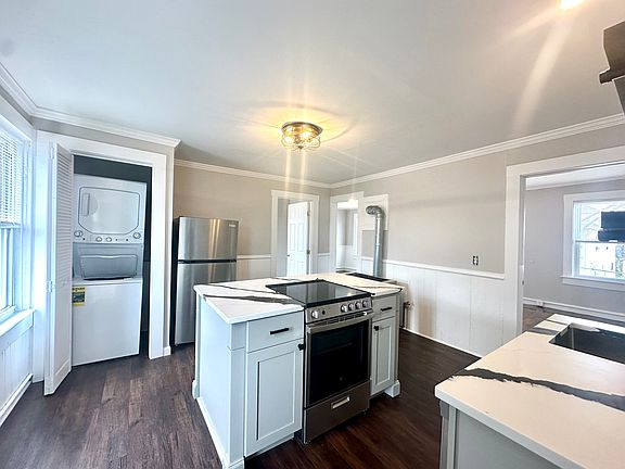 Available now, freshly painted walls and poly'd hardwoods! Check out this newly renovated third floor unit in Downtown Bristol, a stone's throw from Brick Pizza, Borealis Coffee, and Pivotal Brewing. The unit has a sharp new kitchen with breakfast bar and unique quartz countertops. Fully applianced including dishwasher, washer, and dryer. Gas-on-gas heating unit plus supplemental electric baseboards. Rent includes water, trash, and one off-street parking space. +$50/mo for one pet, +$75/mo for two pets. Tenant pays electric, gas, and Wifi. Water included. It is strongly recommended that a tenant hold renters insurance.