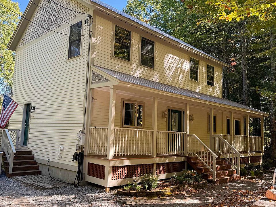 Spacious and modern 3 bedroom Colonial Style home with 3 and 1/2 baths in the Rockhouse Mountain community. The location is well suited for full time families or those looking for a vacation or investment property. The lot captures natural light and is surrounded by the forest. The main level is open concept with a large kitchen with plenty of storage. Master bedroom has its own full bath and walk in closet. Custom closets have been installed inside bedrooms and hallway. The back deck is accessible from the kitchen and lends itself to seamless summer grilling and outside dining. Air conditioning through the house. Hardwood floors. Sound System. Wood stove for those cozy winter nights. Access to beaches. Close proximity to King Pine Ski Area. 25 minute drive to North Conway, shopping, dining, and Cranmore Mt. Ski Area.