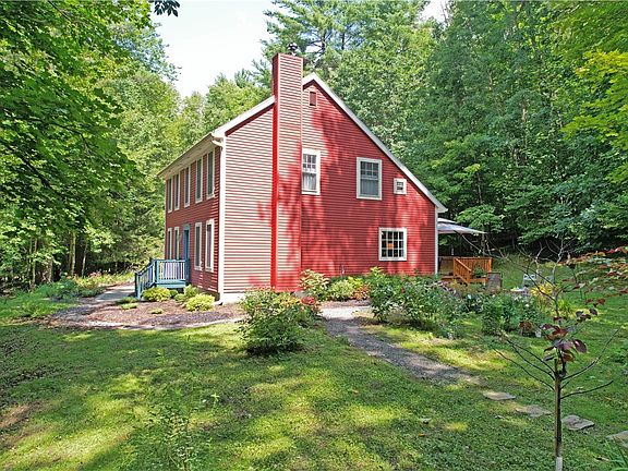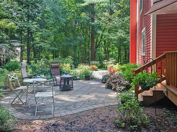 Stunning home combining quintessential coziness with modern luxury. Set in a bright clearing on a 2+ acre wooded plot, this vibrant home has kept its historic charm while enjoying a staggering number of high-end renovations & updates. Including: NEW Roof & Windows, NEW exterior & interior paint, NEW appliances, Renovated Kitchen & Baths, Re-engineered Driveway, NEW Deck & Patio, plus breathtaking landscaping. The expanded kitchen flows into an open space perfect for gathering with family & friends. Sunlight streams in though large paneled windows. A cozy den or “Snug” is framed by beams & hardwood floors. Enjoy built in bookshelves with a brick hearth & Woodstove. A formal dining room sits opposite & a new 1st floor full bath. Upstairs are 4 good sized bedrooms with idyllic views & another full bath. The basement is on its way to being finished: boxed stairs, high ceilings, & sealed concrete floors. Speaking of extra space see the large attached garage. The heating system is definitely an added value point. Unlike traditional electric heaters, Steffes Electric Thermal Storage units convert electricity to heat in off-peak hours, when the demand /price of electricity is lower. Nice!