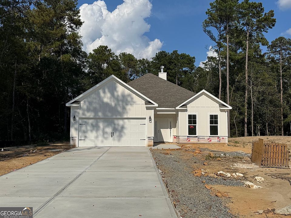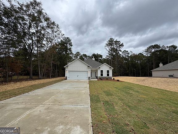 $13,000 Incentive! Located in the Jones County School District with convenient access to Macon, this spacious 3-bedroom, 2-bath ranch home offers incredible value on a large, level private lot. A welcoming covered front porch opens to the foyer, leading into an open-concept family room with a cozy wood-burning fireplace and a bright dining area with a bay window. The kitchen is designed for both style and function, featuring white shaker cabinets, granite countertops, and stainless steel appliances. The private primary suite is tucked away at the back of the home and includes a large ensuite bathroom with a double vanity, corner garden tub, and walk-in closet. Two additional bedrooms and a full bath provide comfort and convenience for family or guests. Built to last with Hardie board siding and architectural shingles, this home also boasts a huge, flat backyard perfect for entertaining or relaxing outdoors. Up to $13K Incentive with preferred lender.