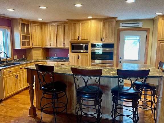Country Living Close to Town on 12.38 Acres with Trail Access Enjoy the best of both worlds with this spacious split-foyer home situated on 12.38 acres-offering peaceful country living just minutes from town. A walking trail is conveniently located nearby, with wooded acreage to the north connecting directly to the trail system. The main level features three bedrooms, including a generous primary suite with ample closet space and a large private bathroom complete with a walk-in tiled shower. The updated kitchen is a standout, offering a large center island with built-in cooktop, double wall ovens, and easy access to the expansive deck-perfect for grilling and entertaining. A formal dining area opens to both the kitchen and living room, creating an inviting and functional flow. Main-floor laundry adds everyday convenience. The walk-out lower level provides a spacious family room with a cozy fireplace, two additional bedrooms, a 3/4 bath, and a large storage area with an attached single garage. Outside, take in beautiful southern views and wide-open space, along with a wooded area to the north that enhances privacy and outdoor enjoyment. There is plenty of room to add a shed or additional outbuildings to suit your needs. Septic system is in compliance, offering peace of mind. Experience comfort, privacy, and acreage-without giving up the convenience of town living.