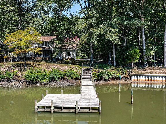 This 4 Bedroom, 3.5 Bath waterfront home with 2,688 Square Feet offers tremendous potential with some basic repairs, TLC and updates that should result in "instant equity". This property includes 3 waterfront lots, 4 bedrooms (all with walk in closets), large waterside deck, screened porch, 2 car attached garage, dock and paved driveway. Enjoy the scenic views of Presley Creek from this perfectly elevated shoreline and all the amenities that the community has to offer (club house, sand beach, community dock & boat ramp and tennis/pickle ball courts. Your choice of an upstairs or downstairs primary bedroom suite. The large family room has a wood burning fireplace with insert and the home also features a formal living & dining room. House & storage shed being sold "as-is"