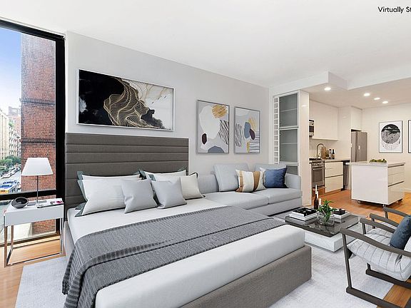 Make this oversized ~500 sqft studio your new home at the coveted One48 Condominium. Oversized windows with bright Northeastern exposure enhance the open-concept layout. The Chef's Kitchen is adorned with quartz countertops, premium stainless steel appliances, and a utilitarian movable kitchen island. Timless white oak hardwood floors are throughout the home. Washer/dryer hookup in one of the two closets. $231/month condo assessment for boiler replacement.