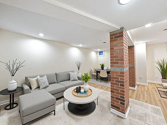 When you head downstairs, the space is very flexible as it allows for various possibilities. There is a spacious office area that includes an abundance of built-ins including a desk and bookshelves. The open rec-room style includes a second bedroom area, full bath with shower, linen closet, walk-in closet, and full-size loading washer/dryer. Best of all, this apartment is made for alfresco dinner parties with its stunning garden.