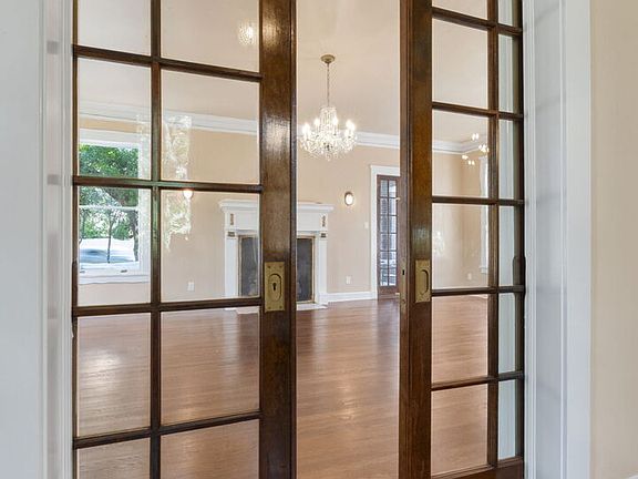 Five-foot-tall fireplace mantleDark wood floorsOriginal architectural charmSolid wood mahogany doorsLarge gas logs