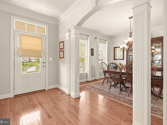 Discover your dream home in the exclusive WATER privileged community of Gibson’s Grant, where pride of ownership shines through in every corner. Meticulously maintained by the original owners, this home boasts luxurious upgrades throughout, offering a lifestyle of unparalleled sophistication. Nestled within this waterfront enclave, residents enjoy access to a private pier, a charming clubhouse housed in the original dairy barn, complete with a fitness center and meeting room, an outdoor pool, picnic pavilion, tot lots, and convenient Cross Island Trail access. Positioned on a desirable lot backing to trees, unique to this street within the community, the home also overlooks a tranquil pond with picturesque Chester River views from the upper deck and winter water vistas from the rear. Step inside to hardwood flooring, crown molding, and high-end finishes accentuating the spacious rooms. The open-concept living room and kitchen are highlighted by a stone surround gas fireplace, perfect for cozy evenings. The chef-inspired kitchen boasts white soft-close cabinetry with roll-out shelves, stainless steel appliances including a double wall oven and gas cooktop, granite counters, and a sprawling center island with a breakfast bar adding style and functionality. The adjacent mud room, equipped with an additional pantry and coat closet offers convenient storage solutions and serves as a practical entry point from the garage. The dining room off the foyer, adorned with crown molding and chair railing, sets the stage for elegant gatherings and memorable meals with loved ones. Opposite the dining room, the main level office, featuring French doors, provides a tranquil workspace for remote work or focused study. Retreat to the luxurious primary bedroom featuring a tray ceiling, access to the covered top deck, a sitting room with dual closets, and a walk-in closet with Elfa storage system. The elegant en-suite bath showcases a double vanity with marble counter and a large, upgraded shower. The upper level hosts two additional bedrooms, a second full bath, and a convenient laundry room, providing functional and comfortable living spaces. Outdoor living is elevated with a covered front deck offering pond views and stunning sunsets over the river, while the fenced backyard oasis boasts a composite deck, paver patio, and lush perennial beds. Additional features include storm doors, an attached two-car garage, and a 4’ high lower level with utilities and storage space. Experience resort-style living at its finest in this exquisite Gibson’s Grant home. Property Updates: Deck, patio pavers, perennial beds, refrigerator, interior paint, blinds, storm doors, and more.