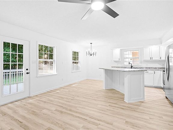 Open floorplanNew shaker cabinetsDining areaNew ss appliances