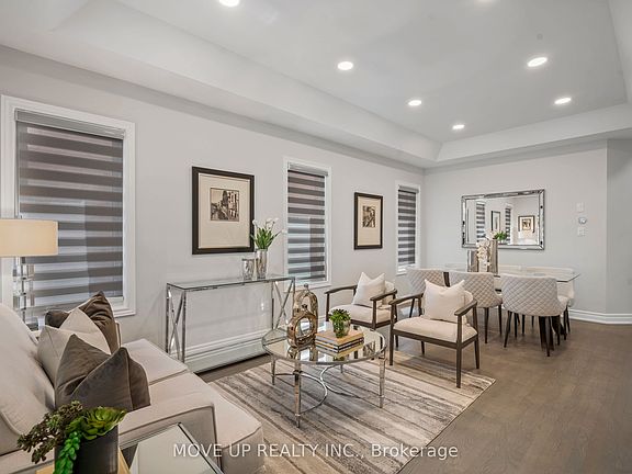Open House December 6th, 2 pm-4 pm. Detached Freehold 4+1 Bedrooms, 6 Bathrooms. No Sidewalk. Welcome to Refine Living in the Prestigious Valleys of Thornhill! Step into one of the most coveted and intelligently designed floor plans in the area, boasting over 3,000 sq.ft. Of exceptional living space that seamlessly blends sophistication with everyday comfort. This stunning residence features 9-foot ceilings on the main level, a grand double-door entry leading into a sun-filled, expansive foyer, and a layout that exudes both grace and function. Every bedroom is a private sanctuary, each offering its own private ensuite bathroom, delivering the ultimate in comfort and privacy. The primary retreat is truly opulent, complete with a lavish 5-piece spa-inspired ensuite featuring a soaker tub for two, vanities, and a generous walk-in closet fit for royalty. Indulge in designer upgrades throughout: wood flooring Custom coffered ceilings in the formal dining and living rooms, Designer paint by Benjamin Moore, Luxurious bathrooms adorned with dark mahogany vanities and marble countertops, a chef's kitchen with granite countertops, upgraded cabinetry, built-in pantry, and sunlit eat-in area, open to a spacious family room perfect for effortless entertaining or intimate family moments. Enjoy direct access from the garage, a partially finished basement, and an expansive cantina for your finest wine collection. Step into your own private oasis: a fully fenced backyard with Southern exposure, lush landscaping, no sidewalk, and a clear, unobstructed view framed by mature trees, a rare blend of privacy and elegance. Park up to three vehicles with ease. Whether you're hosting in your oversized principal rooms or enjoying a quiet evening on the entertainer's deck, this home is designed for those who appreciate the finer things.