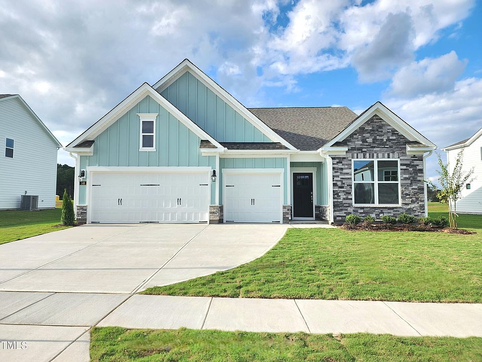Welcome to 148 Gilmer St. at the brand-new community Eagle Creek located in Fuquay-Varina, NC! The Kathryn is one of our brand-new one-story floorplans featured at Eagles Creek. This home boasts an impressive level of comfort, luxury, and style, offering 4 bedrooms, 3 bathrooms, 2,291 sq. ft. of thoughtfully designed living space, and a 3-car garage. Upon entering through the front door, the welcoming foyer leads you past the flex room with beautiful French doors. This is adjacent to a formal dining area perfect for entertainment. Making your way into the kitchen you will delight with the Kathryn luxury features. The Kitchen boasts a walk-in butler's pantry, an expansive kitchen island, beautiful quartz countertops, soft-close shaker-style cabinets with crown molding, and stainless-steel appliances. The Kitchen over-looks a cozy corner breakfast area, perfect for casual dining. This leads you onto the back patio where you can unwind after a long day. The open-concept layout integrates the main living area, which is a spacious family room. You'll find four bedrooms, each with its own walk-in closet, and two more full bathrooms. The primary bathroom features a tub and separate walk-in shower, dual vanity sinks, spacious walk-in closet. The laundry room completes the Kathryn floorplan! Eagle Creek is just 2 miles from US-401 N, allowing an easy commute to Downtown Fuquay-Varina and Downtown Raleigh, were you'll find a plethora of shopping, dining, entertainment, recreation, and much more. One-year builder's warranty and 10-year structural warranty. Your new home also includes our smart home technology package! The Smart Home is equipped with technology that includes the following: Wave programmable thermostat, Z-Wave door lock, a Z-Wave wireless switch, a touchscreen Smart Home control panel, an automation platform from Alarm, and video doorbell. With its thoughtful design, spacious layout, and modern conveniences, the Kathryn is the ideal new home for you at Eagle Creek! Schedule a tour today! *Pictures are for representational purposes only*