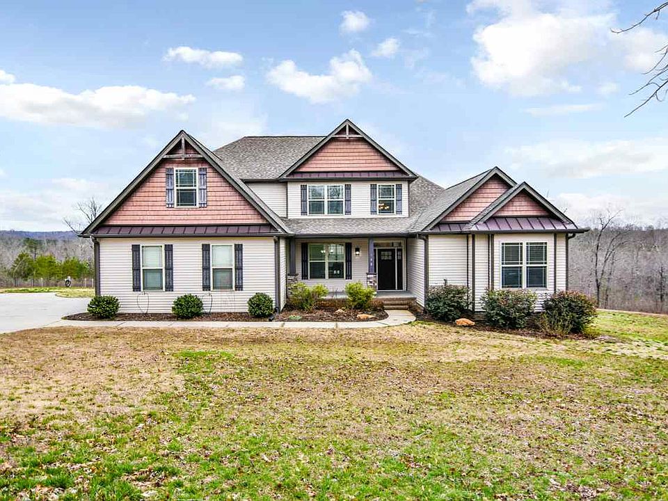 BREATHTAKING PANORAMIC MOUNTAIN VIEWS! Gorgeous 5 bedroom, 3 full bath OPEN FLOOR PLAN home boasts 5" handscraped hardwoods throughout the main floor. The kitchen features tons of stained cabinetry, polished granite counter tops, impressive center island and STAINLESS STEEL appliances including free-standing range with gas cooktop with double ovens. The kitchen overlooks the great room and covered porch with a sweet window above the sink to look out onto the mountain range. The great room features soaring ceilings, tons of natural light and a cozy fireplace with gas logs. The owners' suite is spacious featuring vaulted trey ceiling, sitting area with bay window over looking the expansive rear grounds and mountains, walk- in closet and ensuite with granite counter tops, dual sinks, walk-in shower and separate jetted tub. Another bedroom suite with ensuite is also on the level, perfect for in-laws or guests! Upstairs you'll find 3 additional generous sized bedrooms, bathroom and loft area. Nestled on an expansive 11 acres, enjoy your own private sanctuary on your covered porch overlooking dense trees and the panoramic views of the mountains!
