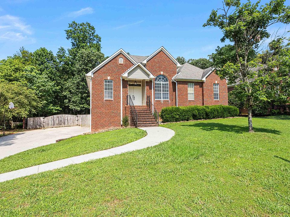 Welcome to this one-level brick beauty in Alabaster’s sought-after Grande View Estates! Nestled on a large, level lot with mature trees, this home features cathedral ceilings in the great and dining rooms, a split-bedroom layout, and fresh interior paint and hardware. The spacious master suite offers a vaulted tray ceiling, jetted tub, double vanities, separate shower, and walk-in closet. The sunroom, with LVP flooring and mini-split HVAC, opens to a grilling deck and a large fenced backyard. All appliances remain. Downstairs you'll find a finished basement with a full bath, large flex room (4th bedroom, den, or playroom), and three extra rooms for offices or storage. Updated lighting, main-level laundry with storage, and a 2-car basement garage complete the package! Enjoy all the subdivision has to offer, community pool (requires membership), tennis courts, playground, walking trails. Plus underground utilities and street lights.