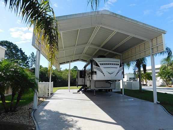 Custom built RV port on popular Greenwing Trail RV port measures 48' long; 24' wide; with a 16'5" center clearance height; edge height clearance 13'7" Wonderful water view Ready for an Executive Suite to be built Convenient to TGO amenities Short walk to pool, fitness center, Blue Heron restaurant, church, Sawdust Club, driving range