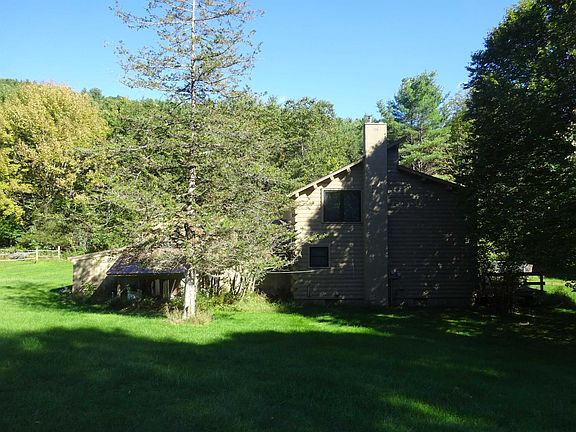 Nice horse property, privately sited log home on 11.4a, southern exposure, view of Mt Ascutney. Open concept kitchen, dining & living room with pellet stove; laundry & half bath on 1st level. 2 bedroom, 2 baths up. Direct entry, attached 2 car garage. Nice 3 stall horse barn with overhang, tack room, hay loft, electric & water. Small ring, open pasture, partially fenced with good dirt road access in Windsor. Consolidated Communications DSL internet @ 25 mbps.