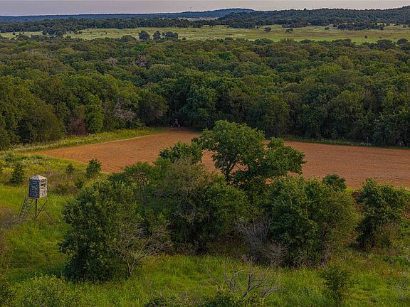 The land rolls gently from 960’ to 920’, sloping down to the West Fork of the Trinity River. Habitat includes thick stands of post oak, cedar elm, and native pecans, native grasses, open parks, and heavy bedding cover. A 2.6-acre food plot recently drilled with Justin Seed Company’s wildlife blend, and multiple blind locations make the ranch ready to hunt.