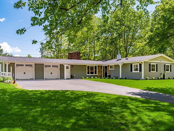 This home is nestled on 3/4 a. in Granville Schools & has been completely remodeled from top to bottom w/new roof, siding, doors, insulation, all new electrical, furnace, ac, & water heater. All new flooring throughout including wood flrs through the living spaces. The new kitchen has fresh white cabinetry, quartz counters, island, & is open to a cozy eating area w/fireplace. Adjoining the kit is the new mudroom. The expansive great rm features a 2nd fireplace & glass door to breezy screened porch. The great rm opens to formal dining rm. All bathrooms have been completely updated including the addition of a luxurious master bath w/stone tile & heated flrs. Master suite also includes a new walk-in closet. Other updates include electric vehicle charger, new driveway, & tuck pointed chimneys.