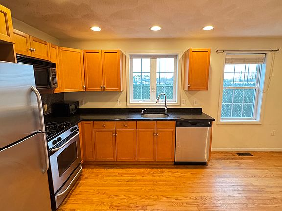 Available February 1st, this stunning 2-bedroom, 2-bathroom unit in prime East Boston offers the perfect blend of tranquility and convenience! Nestled at the end of a quiet dead-end street, the home features gleaming hardwood floors, sleek recessed lighting, and an extra alcove perfect for a home office or additional storage. Both bedrooms are spacious, offering ample storage and closet space. Enjoy the luxury of in-unit laundry and the convenience of an included parking spot. Plus, there's no last month's rent required! The owner will also be completing cosmetic updates, including fresh paint, refinishing the floors, touch-ups in the bathrooms, and more, ensuring the unit is move-in ready. Just a short walk to the MBTA Blue Line, this location provides easy access to Downtown Boston, North Shore destinations, Constitution Beach, the East Boston Greenway, and an array of shops and restaurants. No Last Month Rent. lease terms flexible. 1 parking spot included.