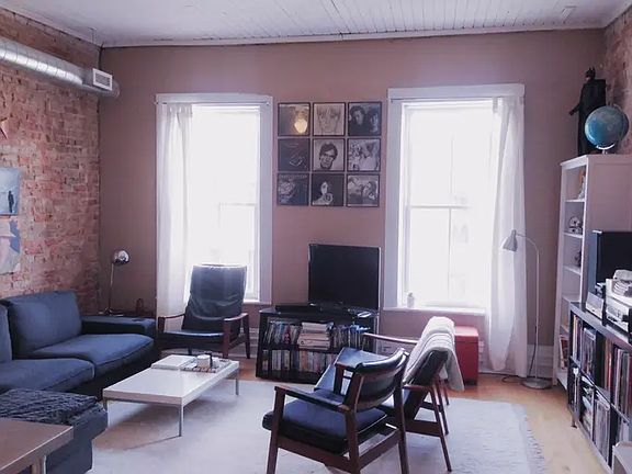 2 bedroom apartment, exposed brick, hardwood, high ceilings, separate heat and AC, 794 Square feet, non smoking, small quiet pet friendly, laundry in building, no on site parking