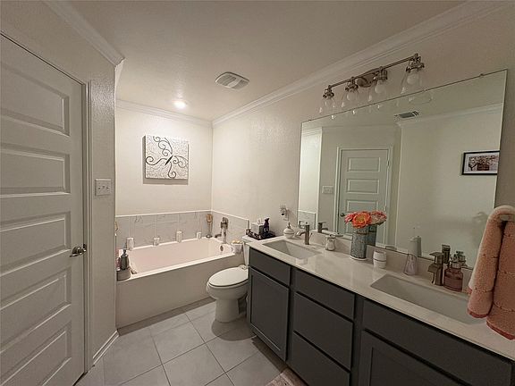 Large rectangular bathtubCrown moldingRural surroundingsWalk-in closetBeautiful marble kitchen countertops
