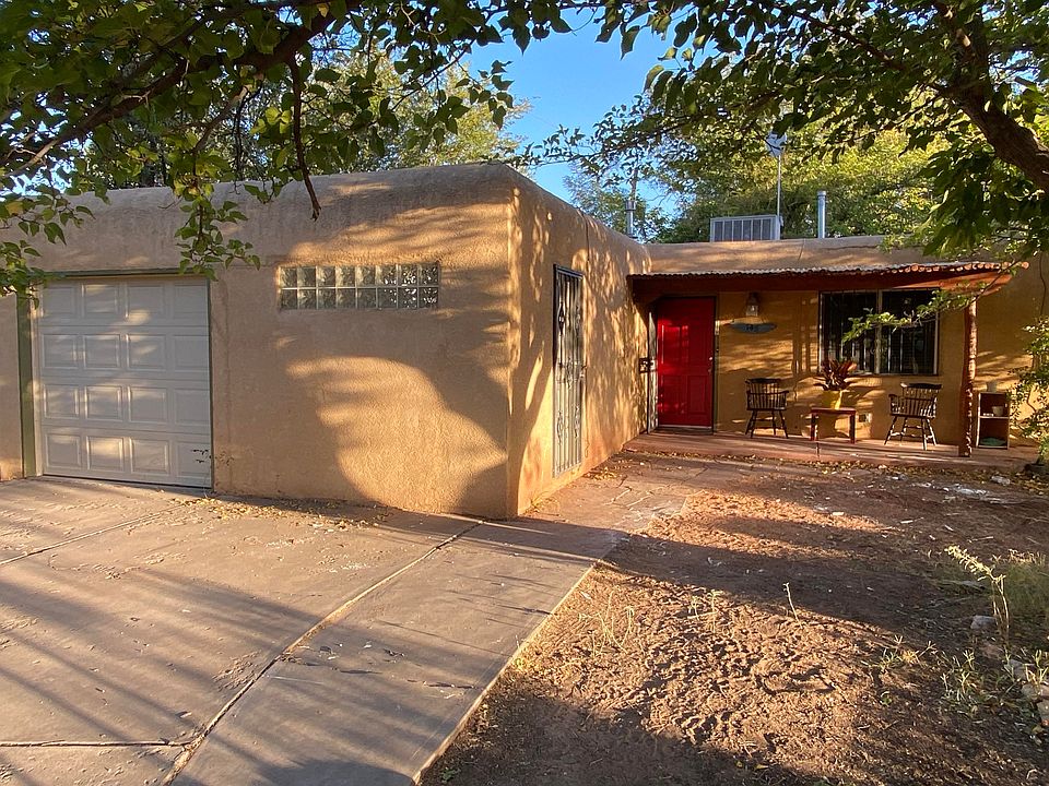 Come take a look at this beautiful home nestled closed to the Bosque! This charming casita features 3 bedrooms, 2 bathrooms, an open kitchen and spacious living room and a heated bonus room perfect for an office/studio/library! The front yard and backyard are perfect for enjoying the great outdoors, it even comes with a chicken coop! A little TLC will go a long ways with this house, come take a look, it will not last long!