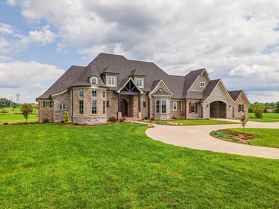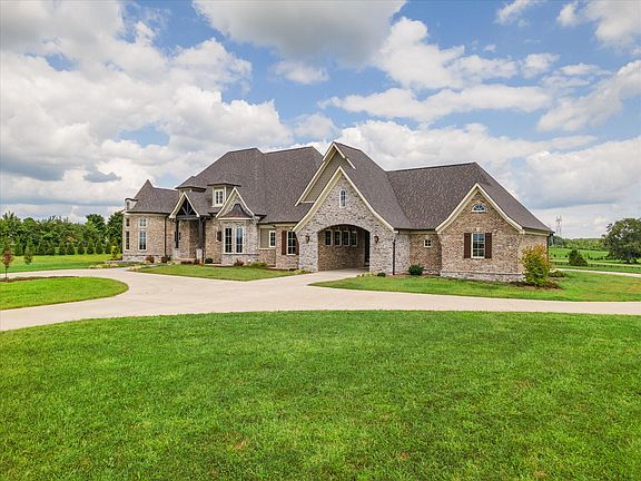 Built in 2020 with the fine craftsmanship of yesteryear, this Midway estate commands attention. Situated on 11+ bucolic acres, the home boasts premium detailing & warm style. The Wolf range, bar with kegerator, and Jotul wood burning stoves ensure a welcoming environment for entertainment. Elegant hardwoods, 10' ceilings (and 8' doors!) add airiness to the distinguished interiors. The first-floor primary suite offers tremendous natural light and adjoins a full bath (with sauna!) and expansive walk-in closet. With garage space for six vehicles, (some with 11' ceilings), car aficionados will find much to admire. Technical utility abounds with geothermal heat & air, emergency propane backup heat, 22 KW Generac generator, hardwired surveillance system, & UV tinting on applicable Andersen 400-series windows. An electric breaker is provided for a future swimming pool and associated equipment, while the lower level is already roughed-in for an additional kitchen or bar. With no HOA and the ability to enjoy horse ownership & more, the home offers freedom & peace minutes from I-64 (5 min), Midway (7 mins), Lexington (20), and Louisville (45).