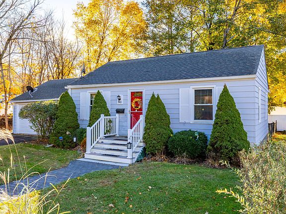 Welcome to this delightful 2-bedroom, 1-bath ranch, perfectly tucked away at the end of a quiet cul-de-sac with a beautiful, fully fenced private yard! Bursting with charm and thoughtful updates, this well-maintained home invites you in with a bright, sunny living room that flows effortlessly into the updated eat-in kitchen-showcasing gleaming granite countertops, stainless steel appliances, and a stylish backsplash. Both bedrooms feature warm hardwood floors and ceiling fans for year-round comfort. Enjoy true peace of mind with extensive upgrades and improvements throughout: a new boiler and oil tank, newer roof, new baseboards, updated windows, a sump pump, and a security system. Custom blinds add a polished finish, while the beautifully landscaped perennial garden brings color and curb appeal in every season. Love to relax or entertain? The sun-screened porch is your happy place-perfect for morning coffee, evening unwinds, or hosting friends on those magical summer nights. Outside, the spacious, fully fenced backyard offers exceptional privacy, with this home being the very last on the block-an ideal setting for play, pets, or peaceful outdoor living. An extended driveway and walkway lead to the convenient one-car attached garage. All this, and you're just moments from shopping, restaurants, major highways, and everyday amenities-making life easy and enjoyable. This charming gem blends comfort, convenience, and character-and it's truly move-in ready. Welcome home!