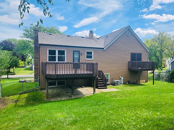 Well maintained raised ranch 4 bedrooms 2 full baths single family home located in the desirable subdivision! Near Leslie Park! Fully fenced in yard, hardwood floors, newer windows, siding and roofs. Two levels with 3 bedrooms and a full bath, kitchen, dining room, living/family room upstairs and one bedroom on main/lower level with full bath living room with fireplace. Two composite decks in the back! Great neighborhood and school district 108 and 13! Close to shopping mall and expressway.