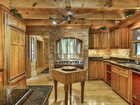Priced well below appraisal. Spectacular dream come true log home in exclusive gated Georgian Highlands. Privacy on 4.88 AC on loud stream w/waterfalls, bridges, manicured paths(Bring your walking shoes to enjoy). Master Gardener's home w/ native woodland gardens and terraced planters. Active apiaries. Home features 3 loft areas, breathtaking vaulted ceilings, double decker wrapping porches/oversized detached garage + add'l detached workshop,tons of upgrades inc. Viking appliances/Sub zero fridge/geo-thermal heating/ generator w/auto-transfer/insulated full finished bsmt/central vac &kickplate/radon venting/granite/travertine/oversized master suite on main level.Wine cellar.Partially fence for dogs.Priced below appraisal. Comm has hiking trails/fishing lake, all paved roads. Convenient btwn Ellijay& Jasper. Very close to gate. Spectacularly maintained.