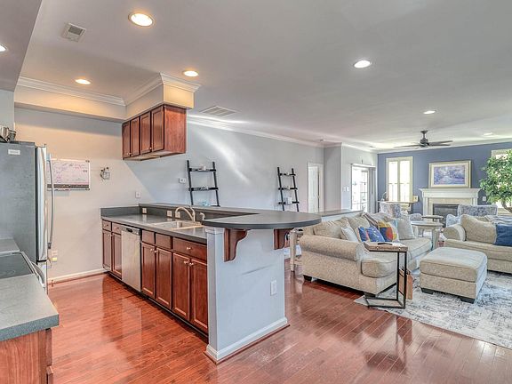 Gas fireplaceRecessed lightingHall bathCrown moldingsEnclosed patioStainless appliancesOpen floor plan