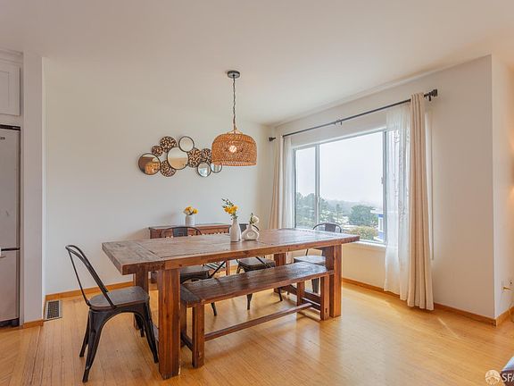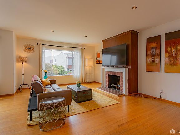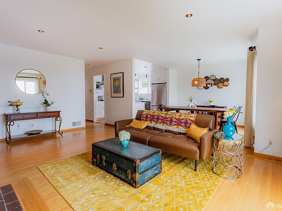 Detached mid-century home in Midtown Terrace with sweeping Pacific Ocean and city views. Bright, open layout features hardwood floors, a wood-burning fireplace, and amazing ocean views from the living room. Three bedrooms and one bath are on the main level plus a versatile lower-level guest suite with a private entrance, spa-like bath, and an additional designer half-bath with imported Italian tiles and a modern vanity ideal for guests, office, or studio. The open floor plan includes a recently remodeled Chef's kitchen with quartz countertops, a commercial Wolf gas stove, stainless appliances, and flows seamlessly into the living and dining areas. Upstairs has one bath with high-end fixtures, designer tile, and an extra-deep tub. Landscaped and turfed backyard with fire pit and space for outdoor dining. Single-level entry, one-car garage with Tesla charger, and ample street parking. Close to Twin Peaks, Sutro Forest, top-rated schools, and vibrant neighborhoods like Cole Valley, Castro, and Inner Sunset. Easy access to Forest Hill Muni.