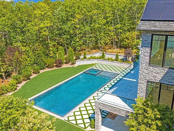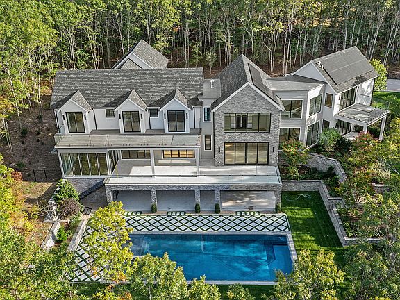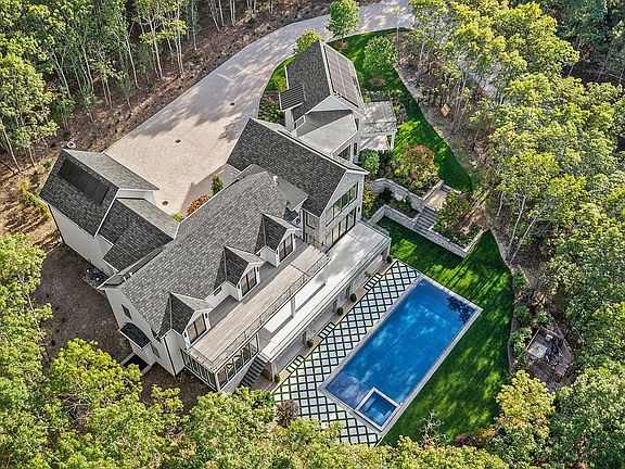 Newly completed as of 10/4/25 and ready for tours for the first time ! This property offers an unparalleled living experience, blending grandeur with exceptional craftsmanship. Situated on a private 1.95-acre flag lot, this stunning home boasts 8 spacious bedrooms, each with its own ensuite bathroom, providing ultimate privacy and comfort. With 8 full bathrooms and 2 half bathrooms, no detail has been overlooked in this exquisite design.Spanning an impressive 9,600 square feet, the home features a massive grand entrance that sets the tone for the entire property. Natural stone accents throughout the bathrooms and kitchen, along with custom millwork, create a sophisticated yet warm atmosphere. Wood floors flow seamlessly throughout, while every room is illuminated by extra tall ceilings that create a sense of openness.The heart of the home is the double island kitchen, perfect for hosting large gatherings, while the expansive eat-in area provides ample space for family meals. A fully covered patio with custom millwork overlooks the breathtaking zero-edge infinity pool—ideal for entertaining or unwinding in your private sanctuary.Entertainment options abound, with a state-of-the-art movie theater and a full-sized gym offering everything you need to relax or stay active. The basement offers extra tall ceilings and plenty of space for all your storage or hobby needs.For those who love outdoor activities, there's ample room to add a pickleball court, while multiple balconies provide serene views of the surrounding landscape. The property's crushed blue stone driveway and solar energy system add both curb appeal and sustainability to this remarkable home.Additional highlights include heated floors in all bathrooms, a large oversized fireplace, and complete privacy, far from the main road, ensuring that this estate offers an unparalleled living experience. Whether you're enjoying quiet moments or hosting large events, this home provides the perfect balance of luxury and functionality.To be completed before summer !