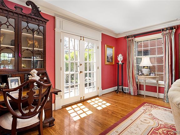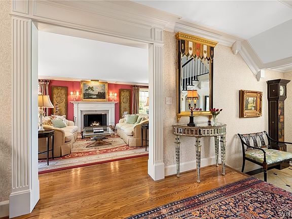 Welcome to 148 Middlesex Road, a stately residence and emblem of timeless elegance, nestled within Buffalo's Park Meadow neighborhood. This traditional estate, built in 1934, exudes grandeur and charm at every turn, with thoughtful updates throughout. With 6,173 square feet of living space, this magnificent residence is a testament to exquisite craftsmanship and classic sophistication, and though grand in scale, feels intimate and inviting. The first floor includes formal living and dining rooms, a spacious traditional kitchen with an eat-in breakfast room, a den, and impressive library with a “hidden,” very unique, bar area. The second floor features 6 bedrooms and 6 full baths, plus a gym, and a bright and spacious laundry room. Step outside to a lushly landscaped, fully-fenced backyard and enjoy al fresco dining or leisurely lounging on the awning-covered, flagstone terrace. Pull into the attached, 2 car garage with new circular driveway. Close to Delaware Park, Nichols and Elmwood Franklin Schools, the new Buffalo AKG museum and the Elmwood Village.